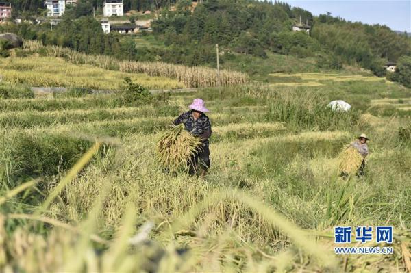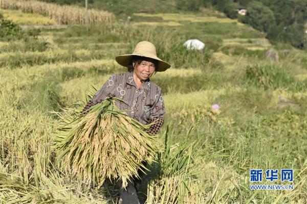 10月2日,福建省三明市尤溪縣聯(lián)合鎮(zhèn)東邊村村民在聯(lián)合梯田上收割稻谷。新華社記者 林超 攝K6y安康新聞網(wǎng)