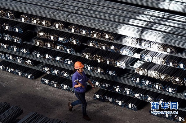 11月17日,福建省三明市三鋼集團(tuán)的工人走過成品堆放區(qū)。新華社記者 姜克紅 攝