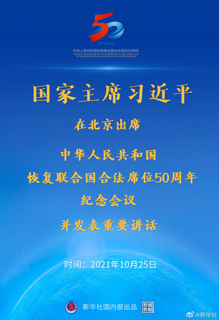 10月25日,國家主席習近平在北京出席中華人民共和國恢復聯(lián)合國合法席位50周年紀念會議并發(fā)表重要講話。