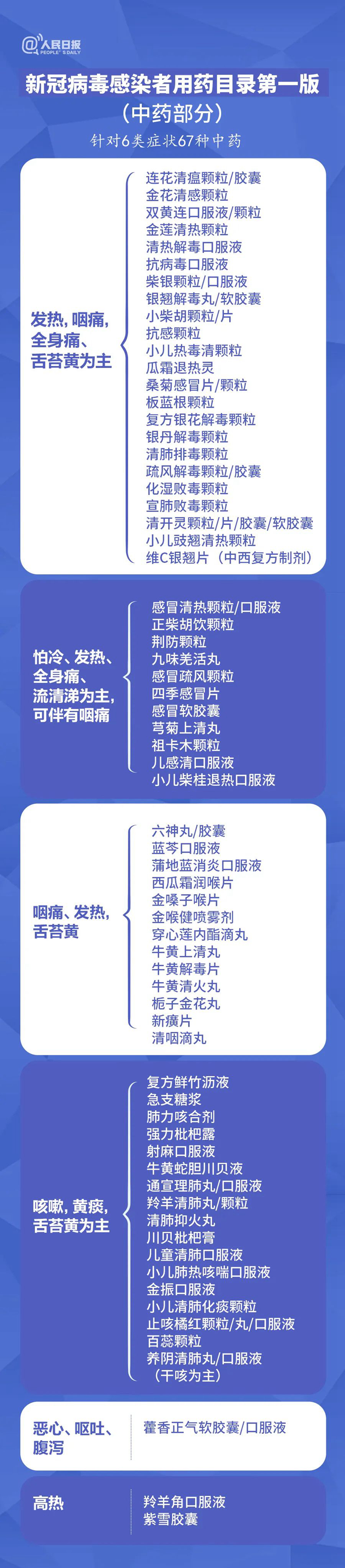 此版用藥目錄按照中西藥分開的原則,是對國家第九版診療方案中推薦用藥的完善和補(bǔ)充,針對發(fā)熱、咽痛等6類中醫(yī)診斷癥狀推薦67個中藥品種;針對咳嗽、咳痰等4類臨床癥狀推薦41個西藥品種。
