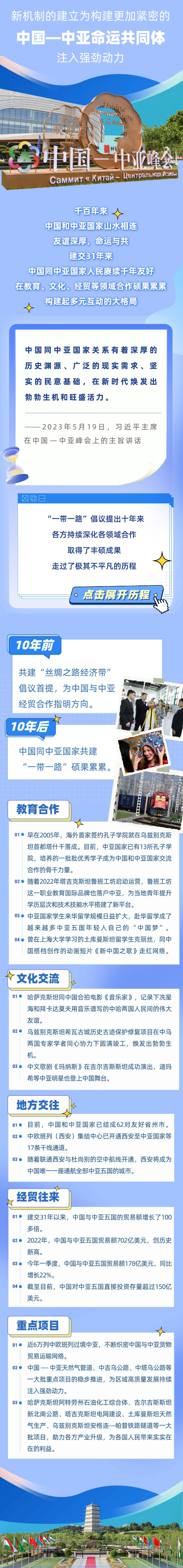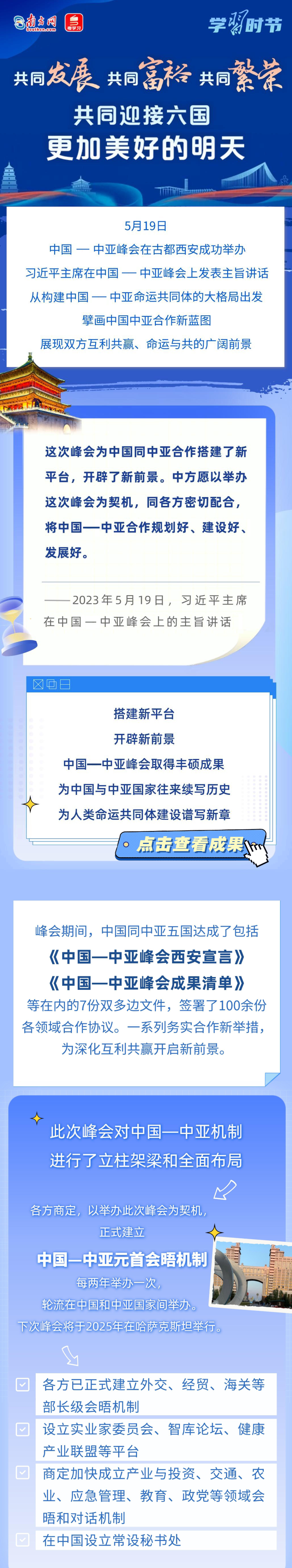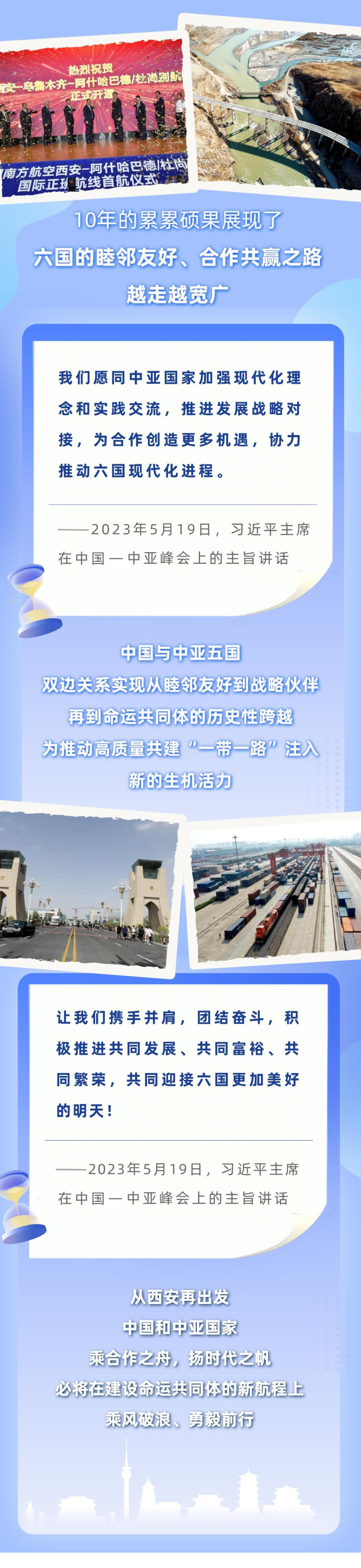 “今天我們?cè)谖靼蚕嗑,續(xù)寫千年友誼,開辟嶄新未來,具有十分重要的意義。”5月19日,習(xí)近平主席在陜西西安主持中國—中亞峰會(huì),并發(fā)表題為《攜手建設(shè)守望相助、共同發(fā)展、普遍安全、世代友好的中國—中亞命運(yùn)共同體》的主旨講話。