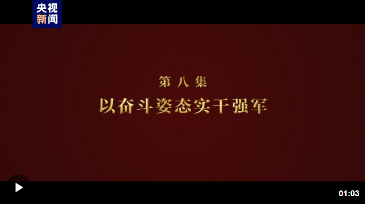 思想解讀類融媒體片《逐夢(mèng)》第八集《以?shī)^斗姿態(tài)實(shí)干強(qiáng)軍》于8月4日20:00檔在央視綜合頻道(CCTV-1)首播,央視國(guó)防軍事頻道(CCTV-7)重播。