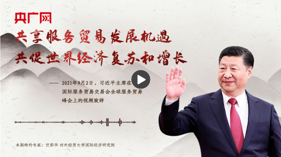 這段話出自2021年9月2日習(xí)近平主席在中國國際服務(wù)貿(mào)易交易會全球服務(wù)貿(mào)易峰會上的視頻致辭。