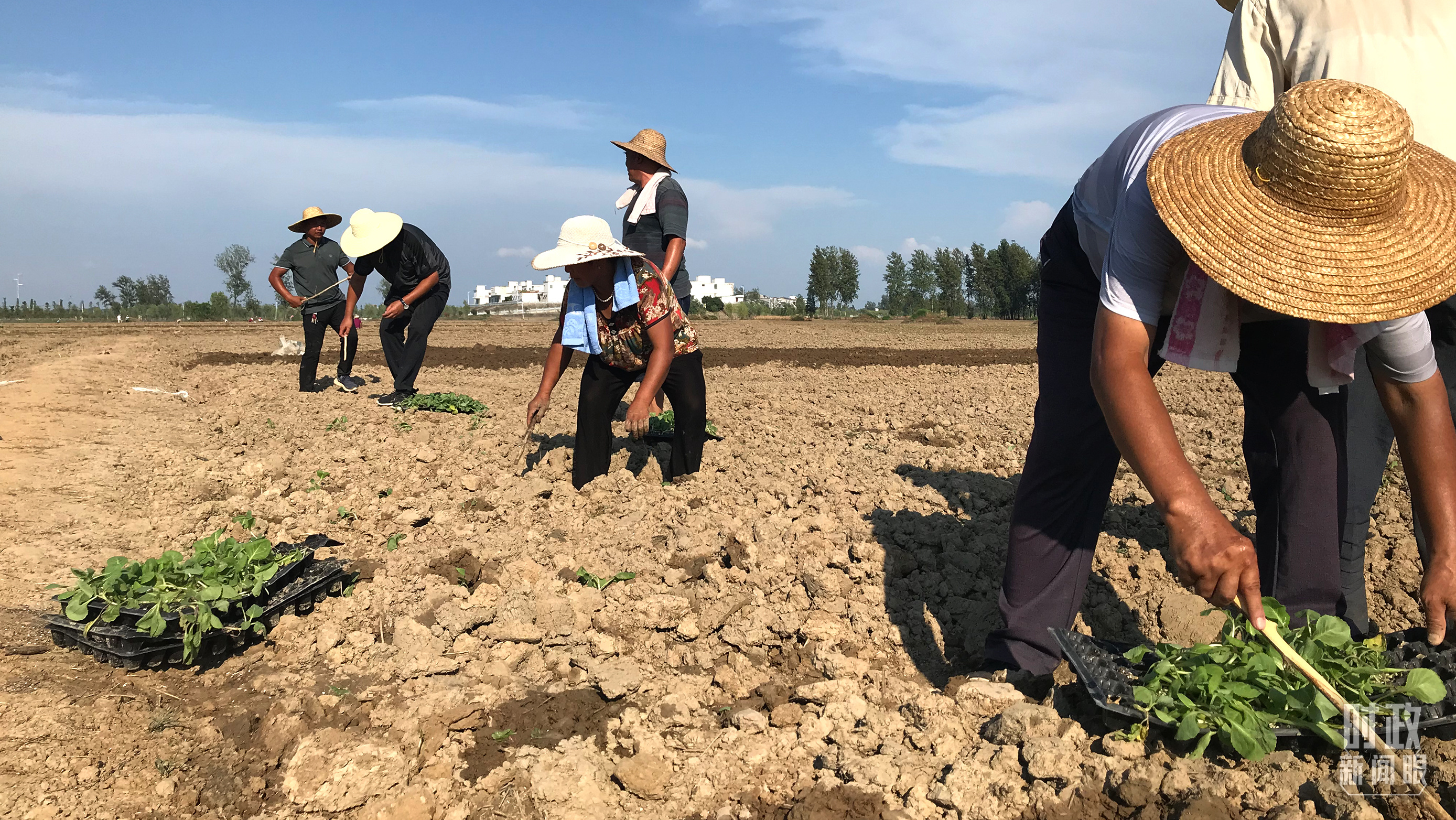 △當年洪水退去后,安徽省蒙洼蓄洪區(qū)的村民正在補種蔬菜。(總臺央視記者石偉明拍攝)