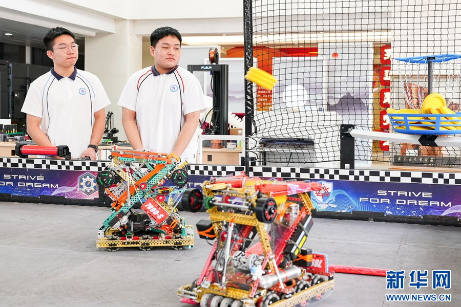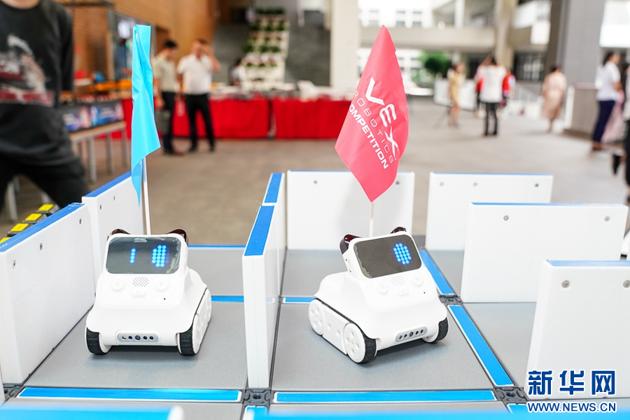 9月12日,福州第三中學(xué),學(xué)生進(jìn)行VEX機器人競賽。新華網(wǎng) 肖和勇 攝