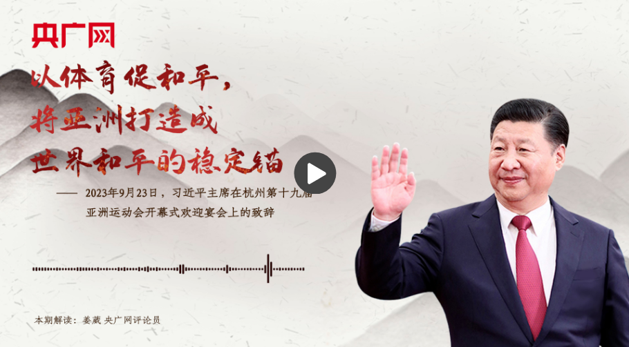 習(xí)近平:作為山海相連、人文相親的命運(yùn)共同體,我們要以體育促和平,堅(jiān)持與鄰為善和互利共贏,抵制冷戰(zhàn)思維和陣營(yíng)對(duì)抗,將亞洲打造成世界和平的穩(wěn)定錨。