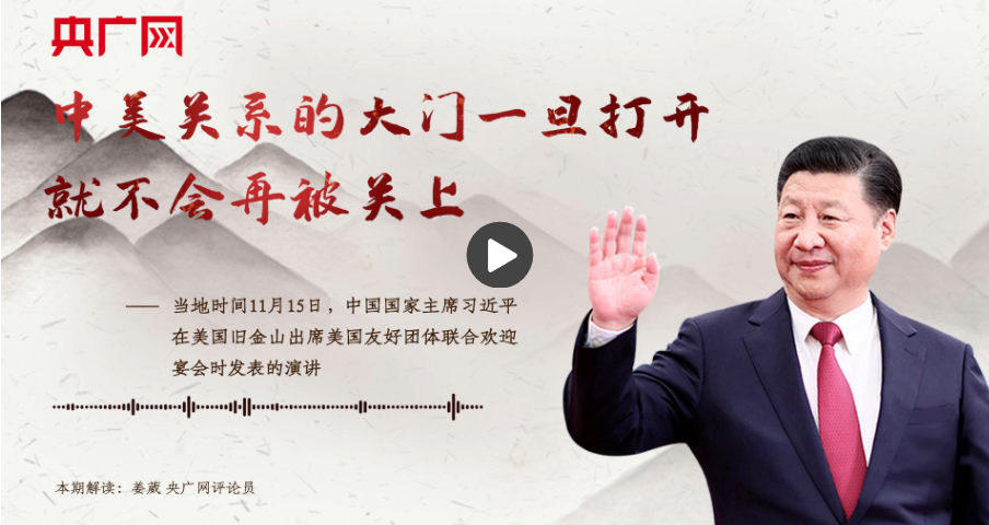 這段話出自當(dāng)?shù)貢r(shí)間11月15日中國國家主席習(xí)近平在美國舊金山出席美國友好團(tuán)體聯(lián)合歡迎宴會時(shí)發(fā)表的演講。它深刻闡明了不同時(shí)代推進(jìn)中美友好事業(yè)發(fā)展的力量源泉在于兩國人民。