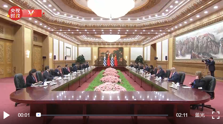 11月22日下午,國家主席習近平在人民大會堂同來華進行國事訪問的烏拉圭總統(tǒng)拉卡列舉行會談。