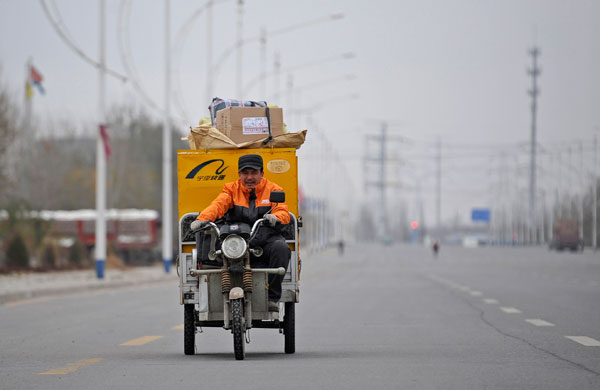 一年一度的“雙十一”網(wǎng)絡(luò)購(gòu)物狂歡正在上演。網(wǎng)絡(luò)外,成千上萬(wàn)的快遞員也在全力奮戰(zhàn),奔波在送貨路上。