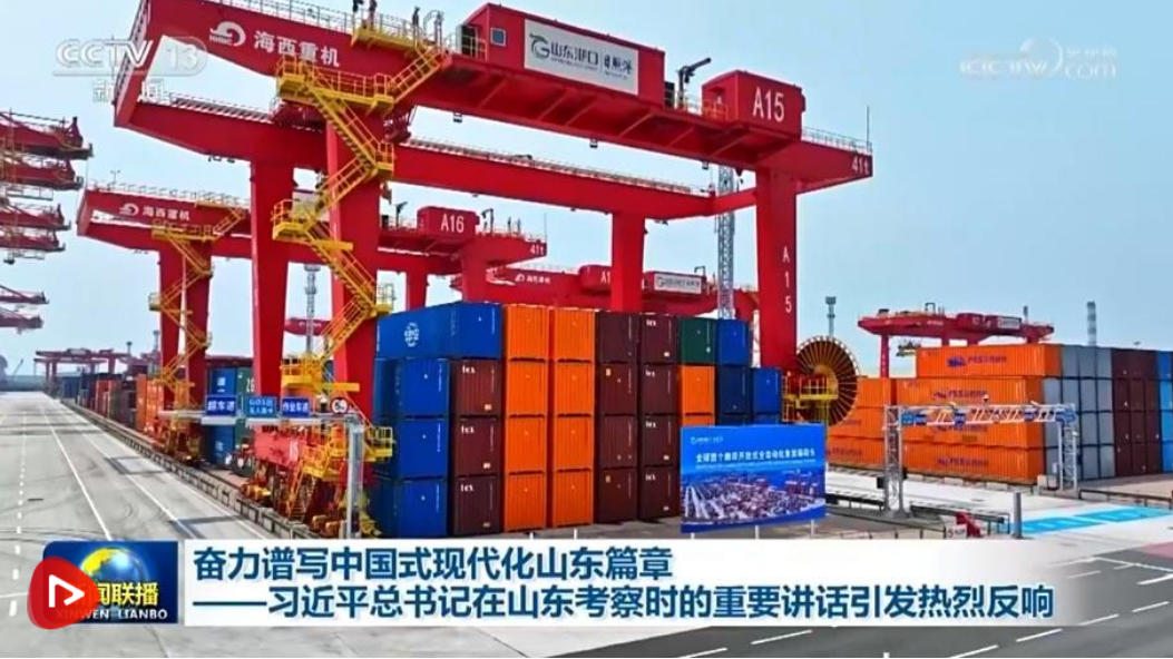 黃海之濱,山東日照港全自動化集裝箱碼頭上無人駕駛集裝箱卡車往來穿梭。習(xí)近平總書記首先來到這里考察,他指出,日照港近年來推進科技創(chuàng)新,將傳統(tǒng)港口改造升級為現(xiàn)代化港口,不僅貨物吞吐量躋身全國前列,還積累了通過傳統(tǒng)產(chǎn)業(yè)改造升級發(fā)展新質(zhì)生產(chǎn)力的經(jīng)驗,值得肯定。