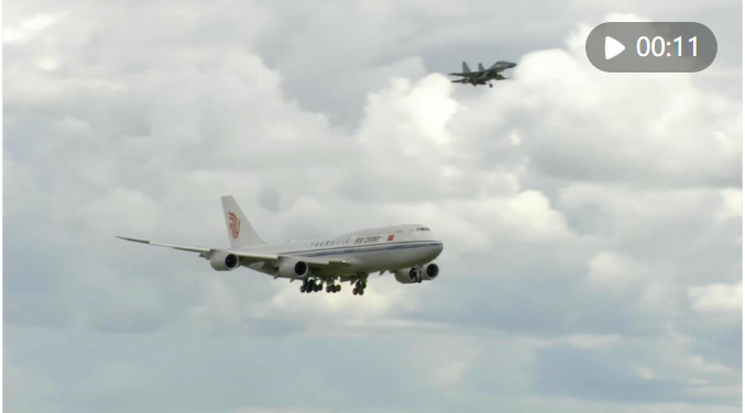 習(xí)近平乘坐的專機進入哈薩克斯坦領(lǐng)空后,哈薩克斯坦空軍戰(zhàn)機升空護航。