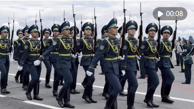 托卡耶夫在機場為習(xí)近平舉行盛大隆重的迎賓儀式。100余名儀仗兵英姿挺拔,軍樂團奏響迎賓曲和迎賓號角。近百名哈薩克斯坦兒童揮舞中哈兩國國旗,歡呼“您好”,熱烈歡迎習(xí)近平到訪。