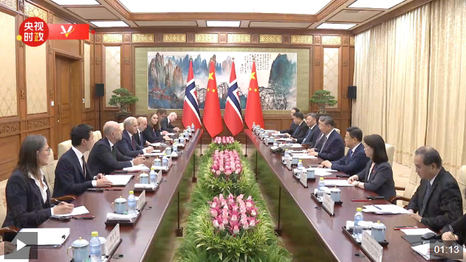 斯特勒說:“主席先生,我同意您的觀點。挪中兩國已建交70年,挪威也是首批和新中國建交的北歐國家之一,兩國交往歷史悠久,未來可以繼續(xù)發(fā)展良好關(guān)系。我們看到,中國在處理當今世界一些重要議題時,比如氣候變化等,可以起到重要作用。我期待著我們的對話。”