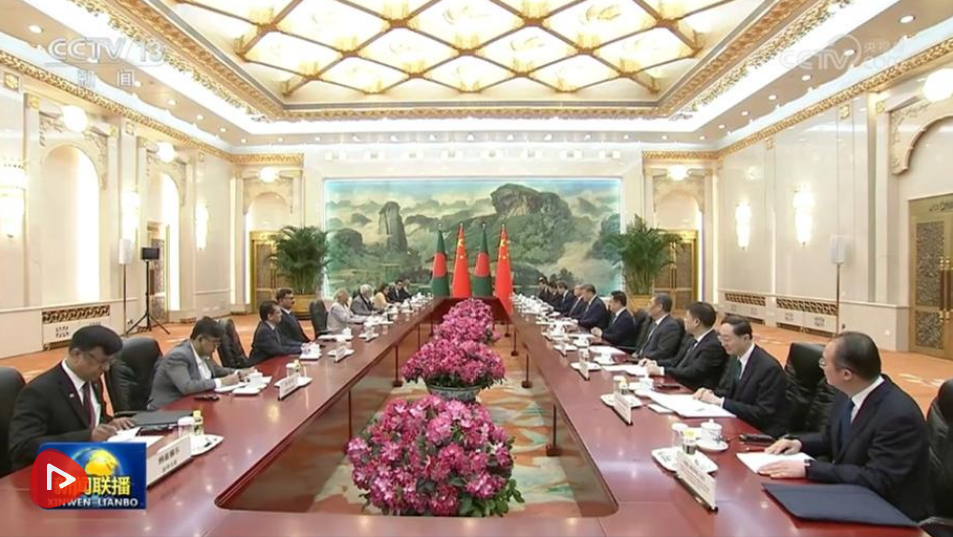 習(xí)近平指出,中孟人民友好交往源遠流長,古老的絲綢之路把兩國緊密聯(lián)系在一起。建交以來,雙方始終相互支持、平等相待、合作共贏。中國對孟加拉國的睦鄰友好政策保持高度穩(wěn)定性和延續(xù)性,堅定奉行面向全體孟加拉國人民的睦鄰友好政策,堅持同孟方做彼此信賴的好鄰居、好朋友、好伙伴。今年是中孟建交50周年和中孟人文交流年。中方愿同孟方一道努力,推動中孟合作不斷邁上新臺階,更好造福兩國人民。