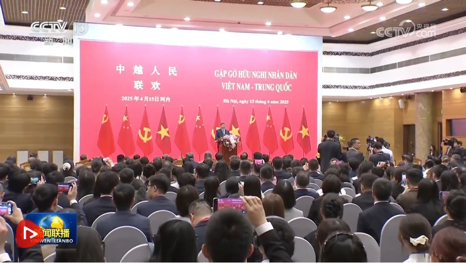 4月15日上午,中共中央總書記、國家主席習(xí)近平在河內(nèi)國際會議中心同越共中央總書記蘇林、越南國家主席梁強共同會見中越人民大聯(lián)歡活動代表。