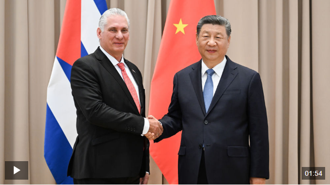 習(xí)近平指出,近年來(lái),我同主席同志多次會(huì)晤,共同引領(lǐng)中古關(guān)系進(jìn)入政治互信更深厚、戰(zhàn)略協(xié)作更緊密、民意基礎(chǔ)更牢固的新階段。今年是中古建交65周年,中方愿同古方進(jìn)一步鞏固鐵桿情誼,構(gòu)建更加緊密的中古命運(yùn)共同體,樹(shù)立社會(huì)主義國(guó)家團(tuán)結(jié)合作、發(fā)展中國(guó)家真誠(chéng)互助的典范。雙方要促進(jìn)各層級(jí)交往、各領(lǐng)域合作進(jìn)一步走深走實(shí),讓高水平政治互信始終成為中古兩黨兩國(guó)關(guān)系的鮮明標(biāo)識(shí)。中方堅(jiān)定支持古巴捍衛(wèi)國(guó)家主權(quán)、反對(duì)外來(lái)干涉和封鎖,支持古巴經(jīng)濟(jì)社會(huì)發(fā)展。作為全球南方重要成員,雙方要在金磚、中拉論壇等框架內(nèi)加強(qiáng)協(xié)調(diào)和配合,反對(duì)強(qiáng)權(quán)政治和單邊霸凌,維護(hù)國(guó)際公平正義。