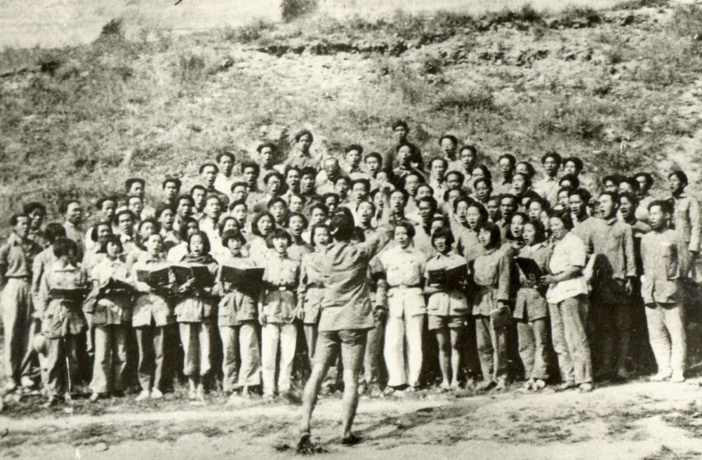 這是1939年魯藝學(xué)員排練《黃河大合唱》的資料照片。新華社發(fā)(延安文藝紀念館供圖)