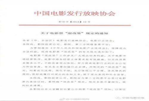 電影市場一直飽受詬病的電影票“不退不改”“只改不退”等現(xiàn)象終于有人來管了,中國電影發(fā)行放映協(xié)會18日發(fā)布《關于電影票“退改簽”規(guī)定的通知》,要求電影票“……