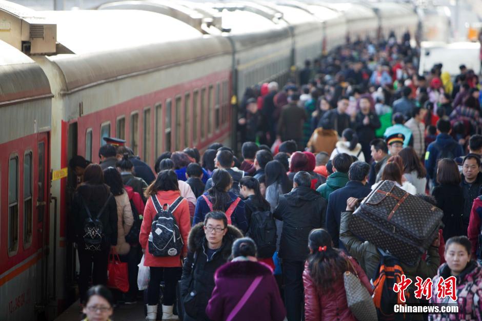 2月23日,山西太原火車站,民眾正在排隊(duì)等待乘車。隨著農(nóng)歷春節(jié)“大年”結(jié)束,中國鐵路迎來客流高峰。中國鐵路總公司預(yù)計(jì),當(dāng)日中國鐵路發(fā)送旅客925萬人次。 張……