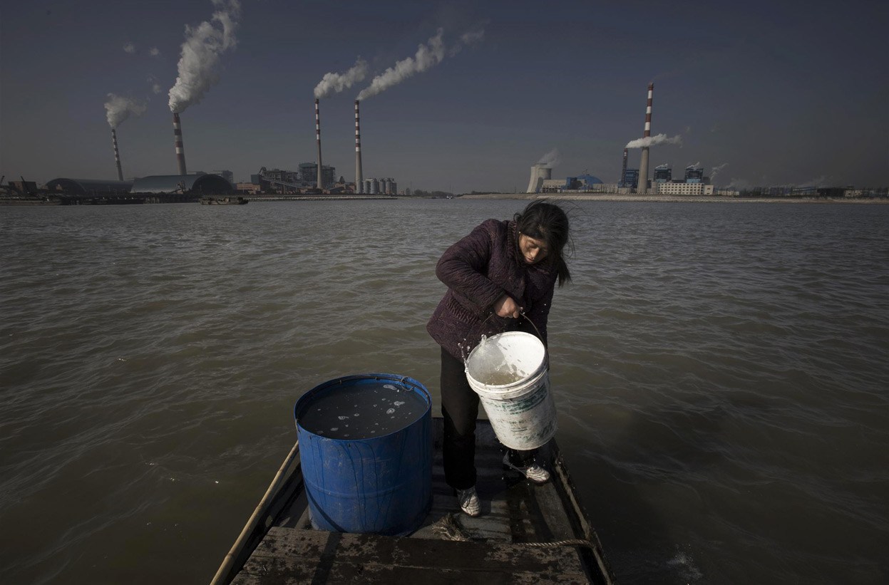 楊林港的一名婦女正從長江里打水。楊林港共有50多戶漁民,幾十年來一直以捕魚為生,喝的都是長江水。過去幾年,長江的污染越發(fā)嚴重,散發(fā)出一股奇怪的味道。2003……