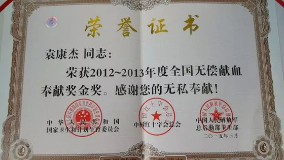 全國(guó)無償獻(xiàn)血奉獻(xiàn)獎(jiǎng)金獎(jiǎng)、市國(guó)稅局副局長(zhǎng):袁康杰(左)