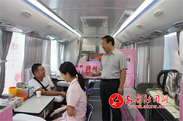 安康新聞網(wǎng)訊(通訊員 屈閔)“今天是7月25日,安康,晴,最高氣溫41℃,請(qǐng)大家盡量減少外出,做好防暑降溫措施,小心中暑!”主播甜美的嗓音從廣播里傳來(lái),提醒廣大市民又是一個(gè)高溫天,要注意防暑。但對(duì)于安康市中心血站的一線工作人員來(lái)說(shuō),這只是個(gè)普普通通的工作日,因?yàn)闊o(wú)論是酷暑還是嚴(yán)寒,我們的獻(xiàn)血車(chē)總會(huì)準(zhǔn)時(shí)出現(xiàn)在大家的視線里,從不缺席。這不,早上7點(diǎn)半,獻(xiàn)血車(chē)已經(jīng)?吭诹宋挥谀檄h(huán)路的喜盈門(mén)超市門(mén),等待愛(ài)心人士的到來(lái)。