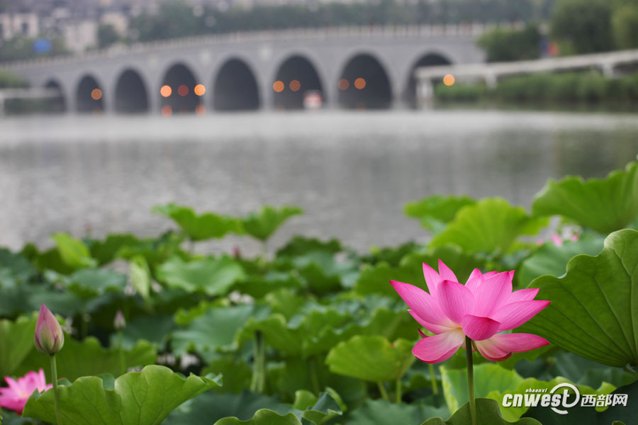 曲江池荷花爭(zhēng)相開(kāi)放 端莊美麗引游人