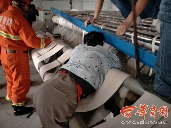 9月5日下午2時許,隴縣一名中年女工不慎手臂被卡烘干機(jī),遂向消防求助,消防員切斷烘干機(jī)滾軸,將女工成功救出。