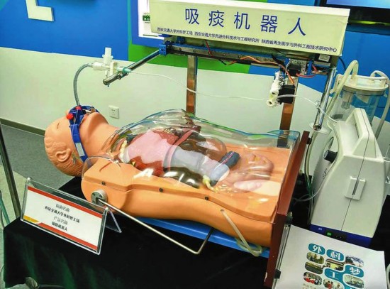 西安交大外科夢工廠研發(fā)制造的吸痰機器人。