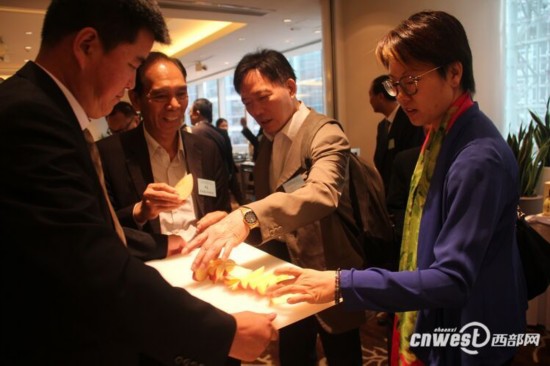 “獼猴桃營(yíng)養(yǎng)價(jià)值高,在香港很受歡迎。目前香港的獼猴桃大部分都是從新西蘭、加拿大進(jìn)口的,看了陜西的獼猴桃,我覺得我們應(yīng)該有合作的機(jī)會(huì)!毕愀酃P架山獅子會(huì)基金籌備事務(wù)主席陳笑玲在與眉縣秦旺果友獼猴桃專業(yè)合作社的銷售部經(jīng)理武繼宏交流后,陳笑玲當(dāng)場(chǎng)留下電話,希望在會(huì)后有進(jìn)一步的交流。