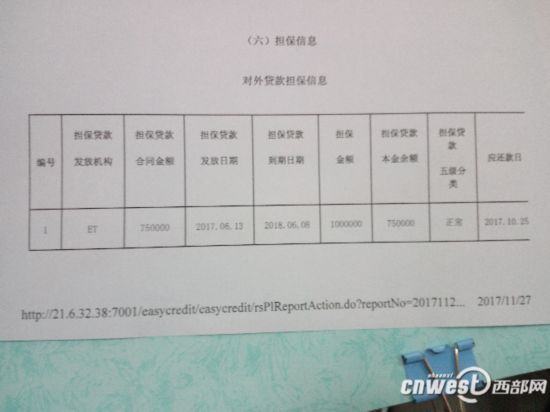 因?yàn)檗k理貸款需要個(gè)人征信報(bào)告,11月27日李永寧從中國(guó)人民銀行征信中心拿到了自己的征信報(bào)告。這一查把李永寧嚇了一跳,自己竟是一筆七十五萬(wàn)貸款的擔(dān)保人,擔(dān)保金額為一百萬(wàn)。