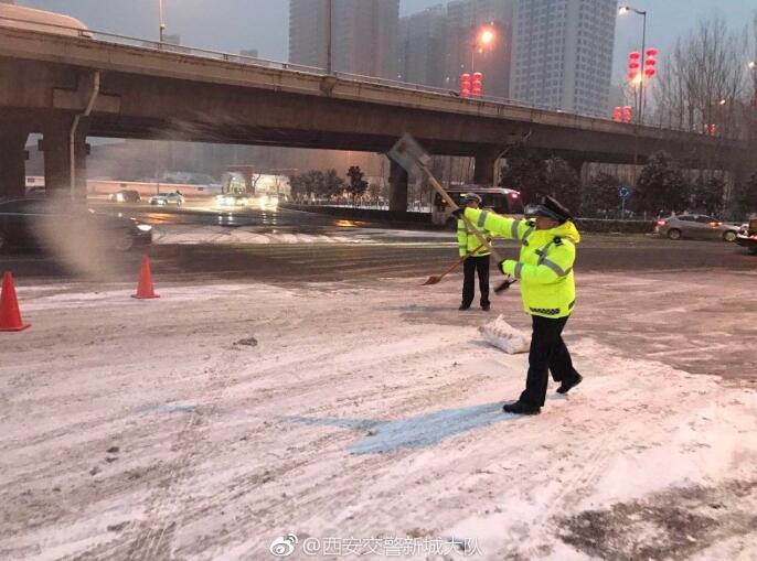 新城轄區(qū):二環(huán)輔道有結(jié)冰情況,韓森路路面,小東門盤道有積雪,咸寧路,華清路路面有結(jié)冰情況,都已經(jīng)通知市政清理撒鹽!痉e雪、結(jié)冰5處】