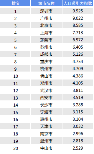 值得注意的是,西安在去年四季度主要城市的人口吸引力排名中,排名上升1位,排到了第12位,人口吸引力指數(shù)為4.201。去年四季度,全國主要城市人口吸引力前11位的城市分別是:廣州、北京、深圳、上海、蘇州、東莞、成都、鄭州、重慶、杭州和武漢。