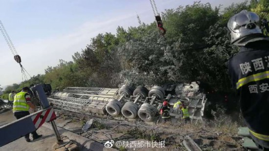 一輛裝載電石的貨車在西安繞城附近側(cè)翻。(圖據(jù)陜西都市快報)3di安康新聞網(wǎng)