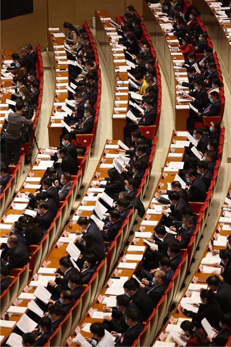會場布置簡樸,氣氛莊重?zé)崃。大會主席臺上,帷幕正中的國徽在鮮艷的紅旗映襯下熠熠生輝。主席臺對面懸掛著“高舉習(xí)近平新時代中國特色社會主義思想偉大旗幟,把握新發(fā)展階段,貫徹新發(fā)展理念,構(gòu)建新發(fā)展格局,只爭朝夕、真抓實干,奮力譜寫陜西新時代追趕超越新篇章”的橫幅,鼓舞人心、催人奮進(jìn)。大會主席團常務(wù)主席劉國中、胡衡華、劉小燕、姜鋒、朱靜芝、郭青、梁宏賢、戴征社、郭大為、韓水岐在主席臺前排就座。在主席臺就座的還有:趙一德、韓勇、馬中平、張廣智、梁桂、徐新榮、王曉、王興寧、莊長興、王浩、楊志斌、大會主席團其他成員,副省長,省政協(xié)副主席,省高級人民法院院長,省人民檢察院代檢察長,在我省的十三屆全國人大常委會委員,省軍區(qū)、武警陜西省總隊主要負(fù)責(zé)人,在我省的副部級高等院校主要負(fù)責(zé)人,省人大代表、省政協(xié)委員中的省級干部等。擔(dān)任過我省正省級職務(wù)在陜西的老同志、其他非住會列席人員通過電視、網(wǎng)絡(luò)收看大會現(xiàn)場直播。省十三屆人大五次會議應(yīng)到代表559人,出席本次全體會議的代表521人,符合法定人數(shù)。9時整,主持會議的劉國中宣布:陜西省第十三屆人民代表大會第五次會議開幕。全體起立,奏唱國歌。