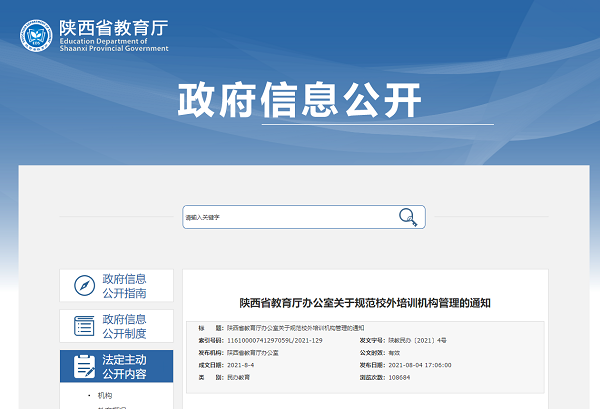 陜西省教育廳辦公室關(guān)于規(guī)范校外培訓(xùn)機(jī)構(gòu)管理的通知