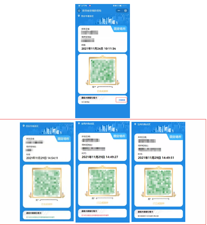 升級后的陜西省疫情防控碼與通信大數(shù)據(jù)行程卡(即行程卡)實(shí)現(xiàn)“卡碼融合”,無需跳轉(zhuǎn),同一界面即可實(shí)現(xiàn)疫情防控碼、行程卡、疫苗接種等信息的顯示。