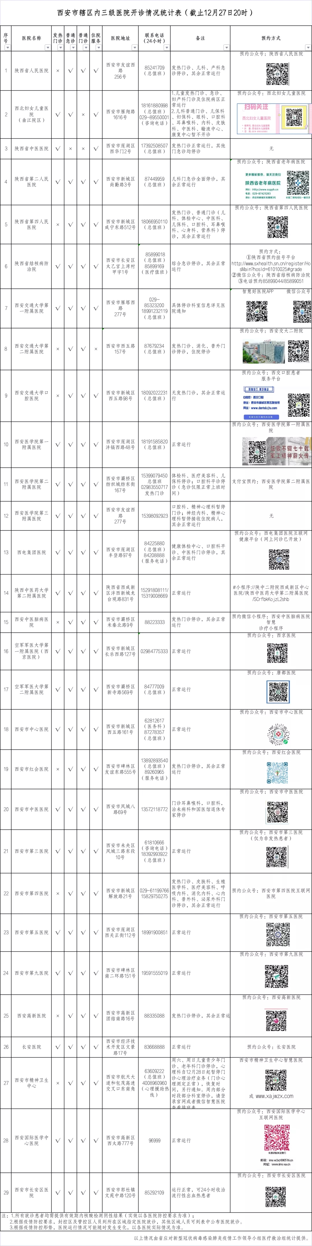 截止12月27日20時,西安市轄區(qū)內(nèi)三級醫(yī)院開診情況,具體戳下圖了解↓↓↓ 9QY安康新聞網(wǎng)
