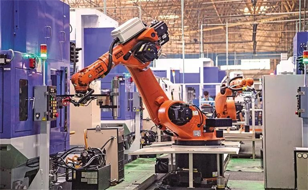 5月10日,工業(yè)機(jī)器人在法士特集團(tuán)重型汽車變速器軸類產(chǎn)品自動(dòng)化生產(chǎn)線上作業(yè)。記者 袁景智攝