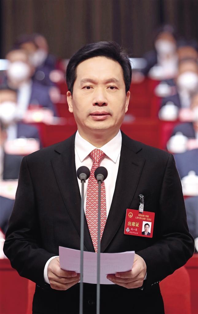 代省長趙剛代表省政府向大會作政府工作報告。 記者 母家亮攝