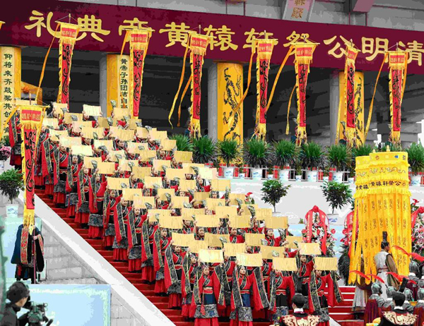 鼓聲雄渾,鐘鳴悠遠(yuǎn)。擊響的34通鼓聲,象征著全國34個省、自治區(qū)、直轄市,香港、澳門特別行政區(qū)和臺灣地區(qū),以及海內(nèi)外中華兒女崇敬初祖的共同心聲;9響鐘鳴,代表了中華民族傳統(tǒng)禮儀的最高禮數(shù),表達(dá)全體炎黃子孫對人文初祖軒轅黃帝的無限景仰和無比感恩!饵S帝頌》響徹全場,拉開典禮大幕。