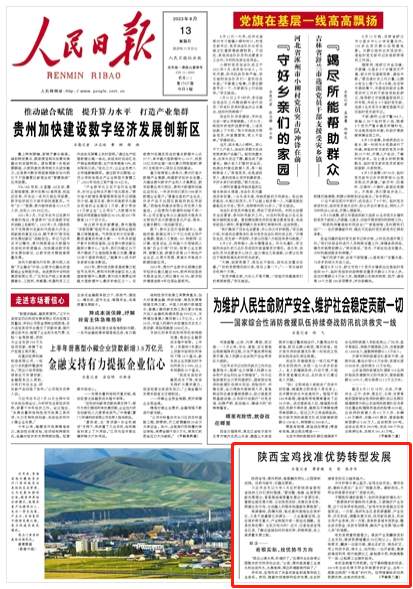 人民日報關(guān)注:陜西寶雞找準(zhǔn)優(yōu)勢轉(zhuǎn)型發(fā)展