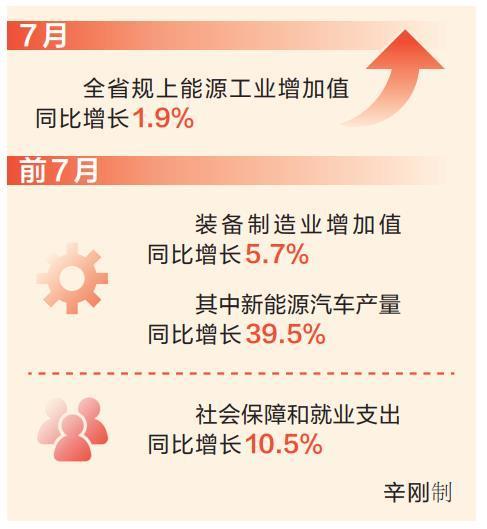 財政收支穩(wěn)定增長。前7月,全省一般公共預(yù)算收入2198.84億元,同比增長5.3%;一般公共預(yù)算支出4151.75億元,同比增長3.2%。其中,社會保障和就業(yè)支出同比增長10.5%,衛(wèi)生健康支出同比增長6.3%,節(jié)能環(huán)保支出同比增長4.3%。