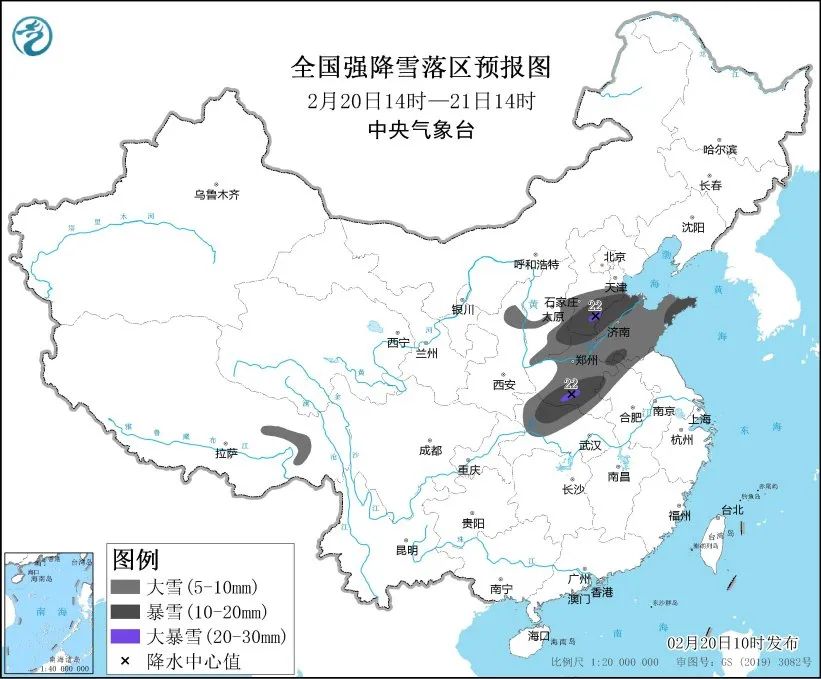 20日至22日,中東部地區(qū)將出現(xiàn)大范圍雨雪天氣。預(yù)計(jì)2月20日14時(shí)至2月21日14時(shí),陜西北部、山西東南部、河北南部、山東、河南、安徽北部、湖北西部、西藏東部等地部分地區(qū)有大到暴雪,其中,河北南部、河南南部等地局地有大暴雪(20~22毫米)。上述部分地區(qū)新增積雪深度3~8厘米,局地可達(dá)12厘米以上。