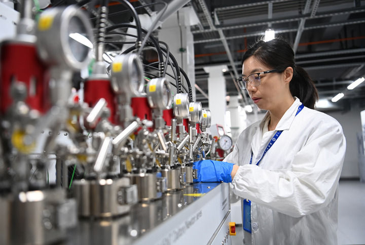 工作人員在榆林中科潔凈能源創(chuàng)新研究院工藝放大平臺實(shí)驗(yàn)室制備催化劑小試樣品(2024年3月6日攝)。新華社記者 鄒競一 攝