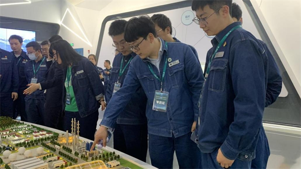 在講解員的引領下,學員們走進隆基綠能智慧能源展覽館,進一步了解能源發(fā)展歷史和中國光伏行業(yè)發(fā)展歷程。從“向‘陽’而生”到“光伏驅動智能星球”,各展廳巧妙地將世界與中國兩條線索交織在一起,通過時間軸和實物展品的呈現,講述了光伏產業(yè)的誕生之路以及隆基品牌的故事。在近距離觀察制絨、擴散、激光摻雜等先進工藝的生產方式時,學員被隆基綠能在產品研發(fā)和市場拓展方面的卓越成就所震撼。