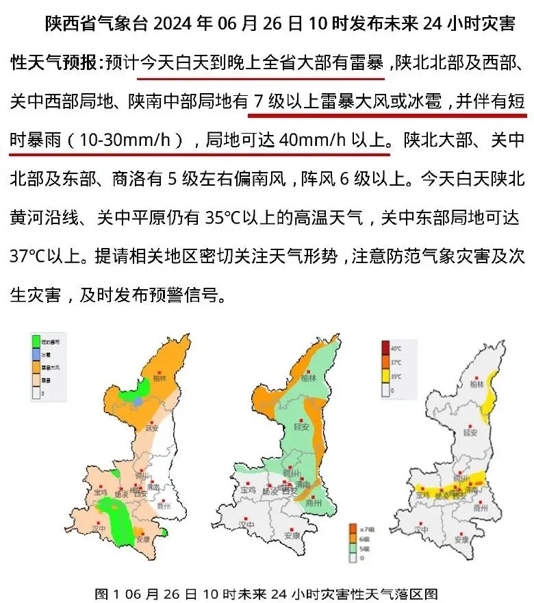 陜北大部、關(guān)中北部及東部、商洛有5級左右偏南風(fēng),陣風(fēng)6級以上。今天白天陜北黃河沿線、關(guān)中平原仍有35℃以上的高溫天氣,關(guān)中東部局地可達37℃以上。提請相關(guān)地區(qū)密切關(guān)注天氣形勢,注意防范氣象災(zāi)害及次生災(zāi)害,及時發(fā)布預(yù)警信號。