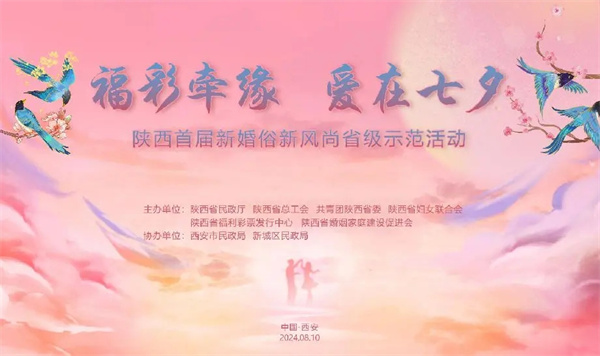 今年的8月10日,是中國傳統(tǒng)的七夕佳節(jié),為大力推進(jìn)婚姻領(lǐng)域移風(fēng)易俗,引導(dǎo)新人樹立文明、健康、理性的婚戀觀,陜西省民政廳等4部門計劃舉辦“福彩牽緣 愛在七夕”陜西省首屆新婚俗新風(fēng)尚省級示范活動,現(xiàn)面向全省招募新人。