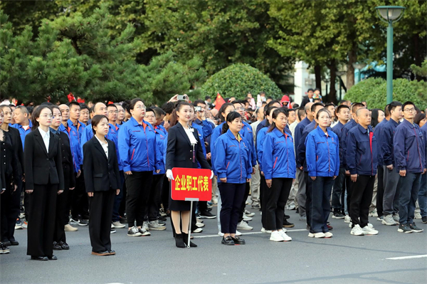 企業(yè)職工代表參加升國旗儀式。