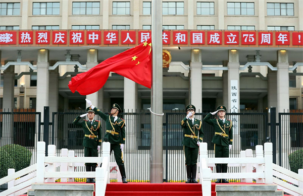10月1日,我省在西安新城廣場隆重舉行升國旗儀式,慶祝中華人民共和國成立75周年。